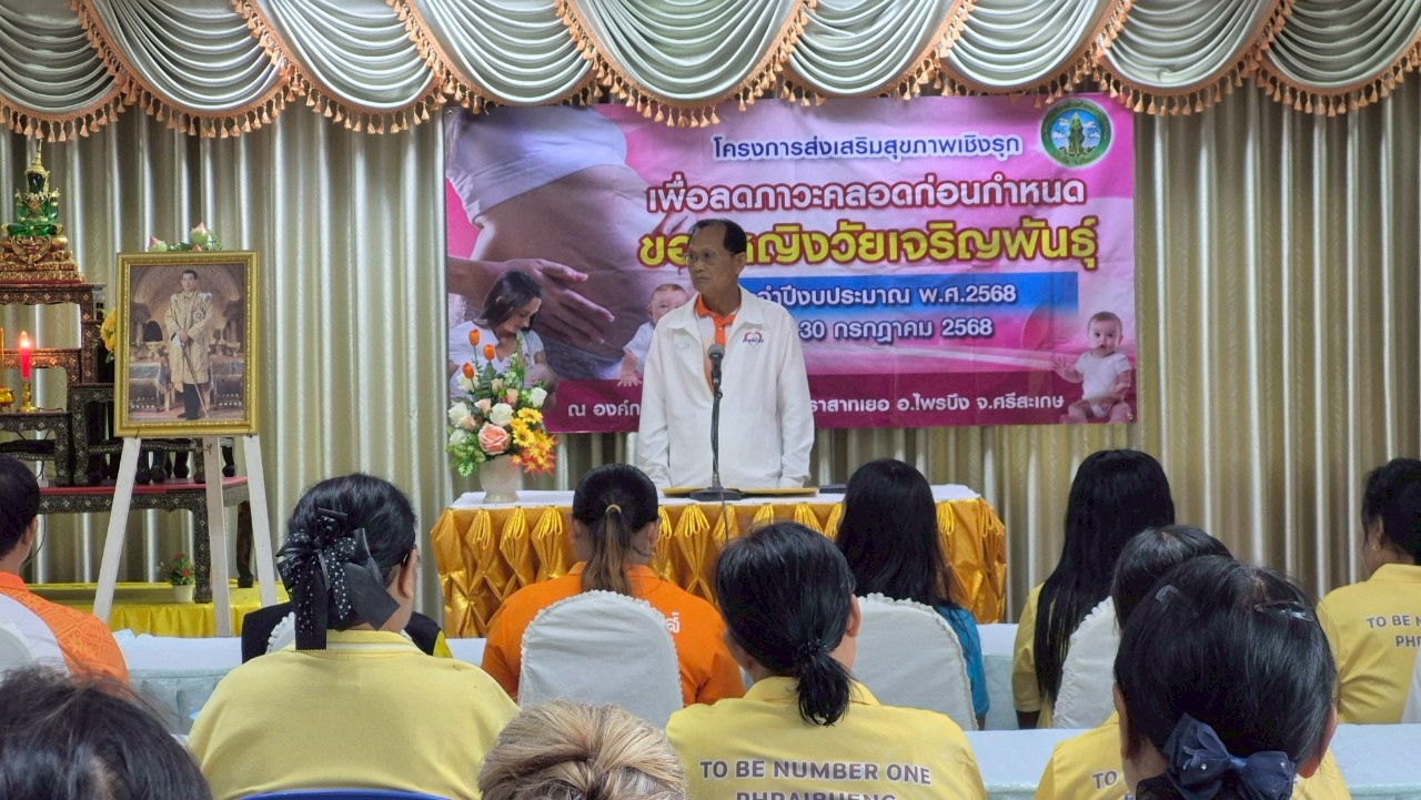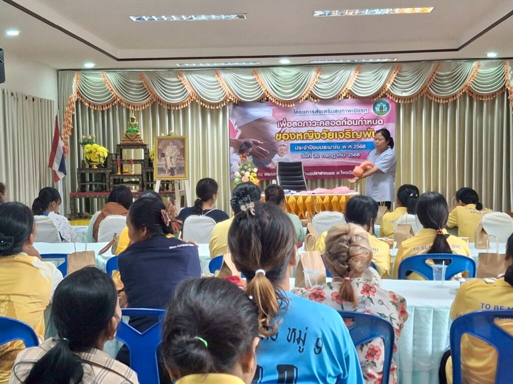 วันที่ 30 กรกฎาคม 2568 เวลา 09.00 น. ณ ห้องประชุมองค์การบริหารส่วนตำบลปราสาทเยอ องค์การบริหารส่วนตำบลปราสาทเยอ ได้ดำเนินโครงการส่งเสริมสุขภาพเชิงรุก เพื่อลดภาวะคลอดก่อนกำหนดของหญิงวัยเจริญพันธุ์ ประจำปีงบประมาณ 2568 เพื่อลดอัตราการคลอดก่อนกำหนดของหญิงวัยเจริญพันธ์ การรับรู้อันตรายของการคลอดก่อนกำหนด และเพื่อเป็นการให้ความรู้ความเข้าใจ ต่อหญิงที่กำลังตั้งครรภ์สามารถดูแลตนเองเมื่อเกิดภาวะฉุกเฉินในระหว่างการตั้งครรภ์ได้อย่างถูกต้องปลอดภัย